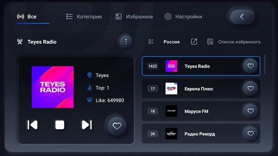 Отличный радио сигнал. Создан на чипе TDA7708 - это поддержка функций RDS, минимальные звуковые помехи и высокая чувствительность к сигналам радиостанций. Сигнал заметно стабильнее, что особенно хорошо заметно в районах со сложным ландшафтом. В головном устройстве Teyes X1 было произведено обновление логотипа радиостанций. Мы сохранили на сервере радиостанций всех городов России, Белоруссии, Украины, Казахстана. При подключении к сети интернет можно загрузить станции той местности, в котором Вы находитесь. Teyes – первая компания, внедрившая данную технологию.