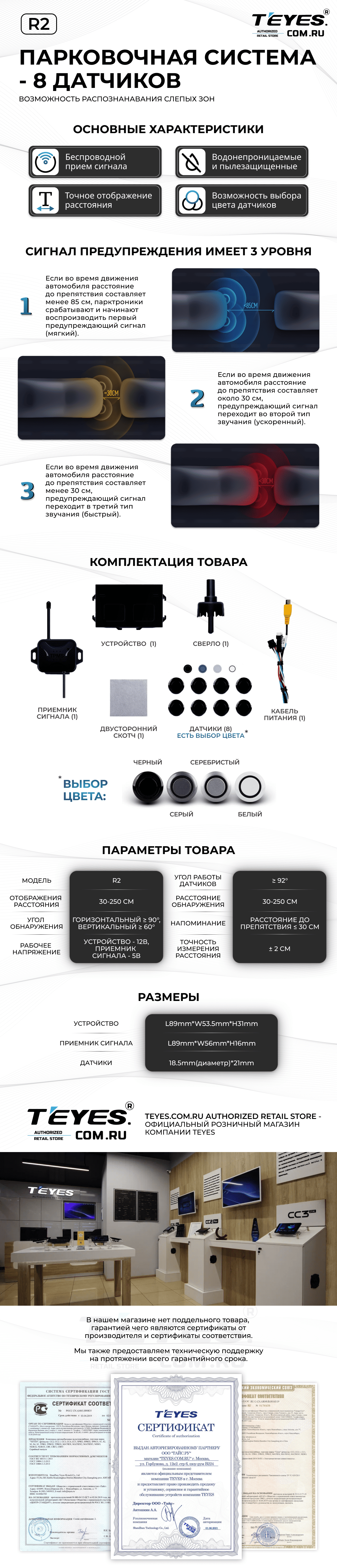 Передние и задние парктроники Teyes R2 для CC4 Pro / CC4 / CC4L / CC3 2K / CC3 / CC3L / CC2 Plus / SPRO Plus / TPRO2 / LUX ONE (Черные) 8-датчиков - купить всего за 21 900 руб. в интернет-магазине в Сочи Teyes.com.ru. ✓ Самый лучший выбор мультимедиа ✓ Лучшая замена штатному ГУ ✓ Тел. +7 (800) 775-31-74