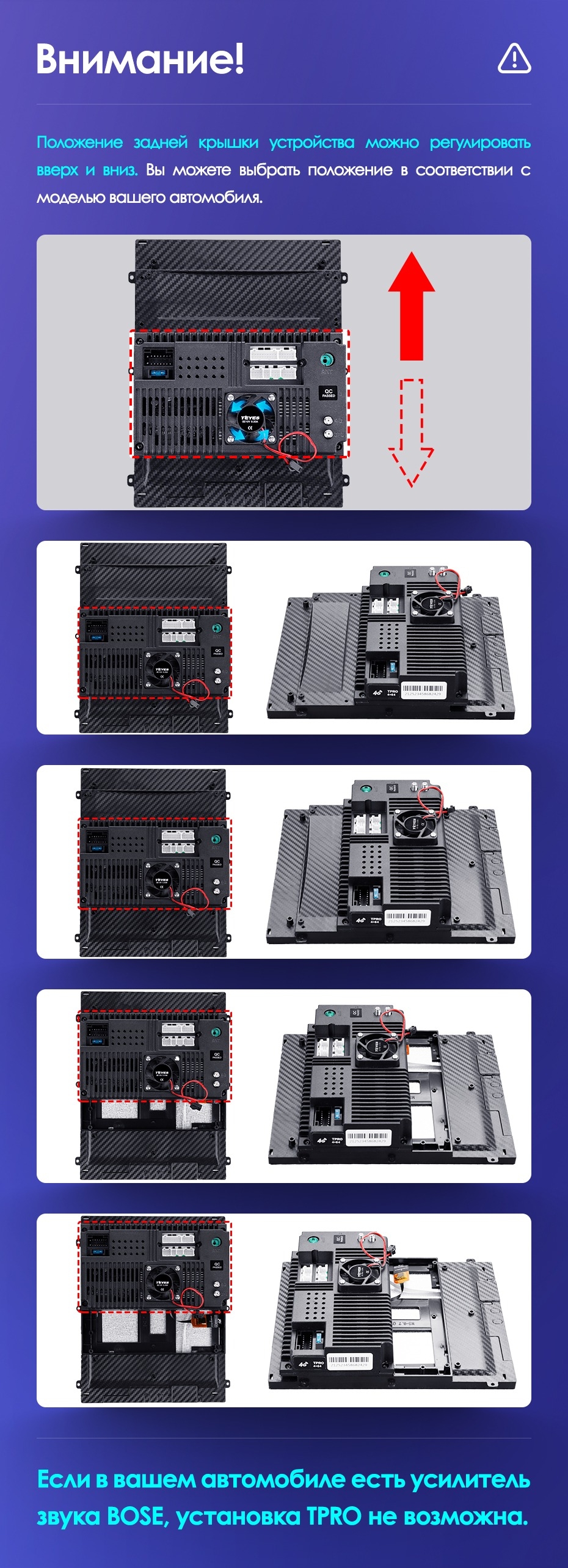 Вертикальная установка магнитолы закрывается специальной рамкой под определённый автомобиль. Утончённый, лаконичный дизайн Teyes TPRO 2 подойдёт под любую премиальную обшивку салона. Большой выбор цветовых решений интерфейса позволяет создавать индивидуальное оформление, чтобы мерцания и анимации на мониторе не отвлекали от езды. Teyes TPRO 2 - это симбиоз передовых технологий, созданный для вашего комфорта и безопасности.