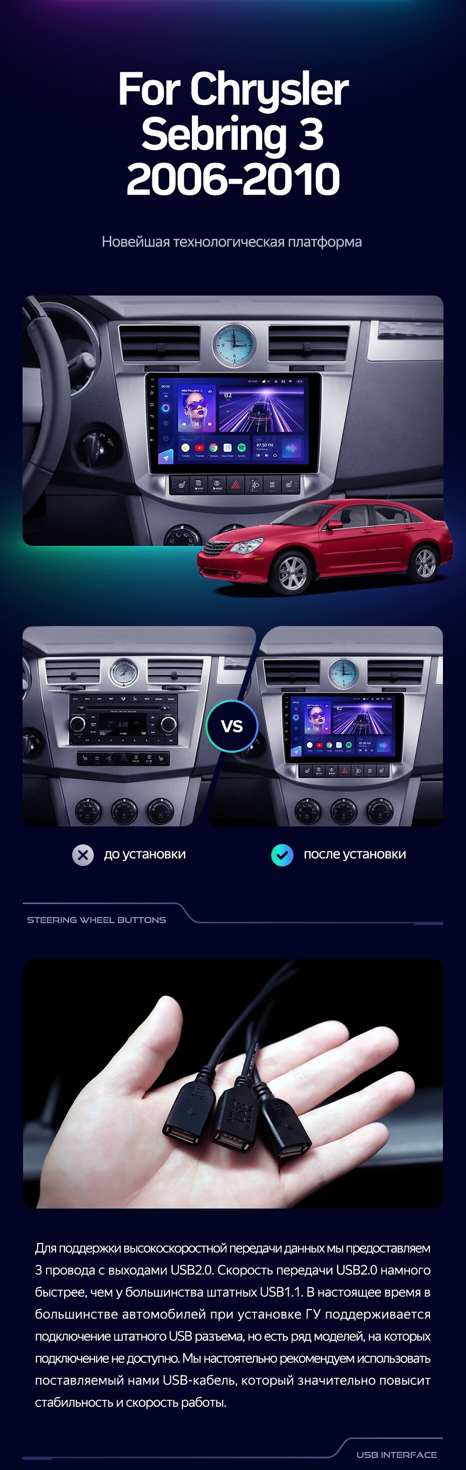 Штатная магнитола Teyes CC3 2K 360 6/128 Chrysler Sebring 3 JS (2006-2010) - купить всего за 57 800 руб. в интернет-магазине в Сочи Teyes.com.ru. ✓ Самый лучший выбор мультимедиа ✓ Лучшая замена штатному ГУ ✓ Тел. +7 (800) 775-31-74