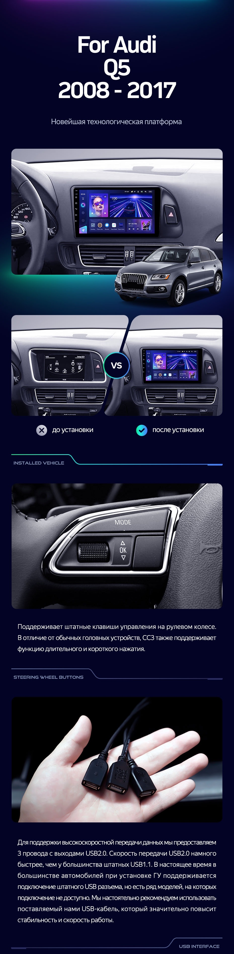 Штатная магнитола Teyes CC3 4/32 Audi Q5 8R (2008-2017) Тип-B - купить всего за 37 300 руб. в интернет-магазине в Сочи Teyes.com.ru. ✓ Самый лучший выбор мультимедиа ✓ Лучшая замена штатному ГУ ✓ Тел. +7 (800) 775-31-74