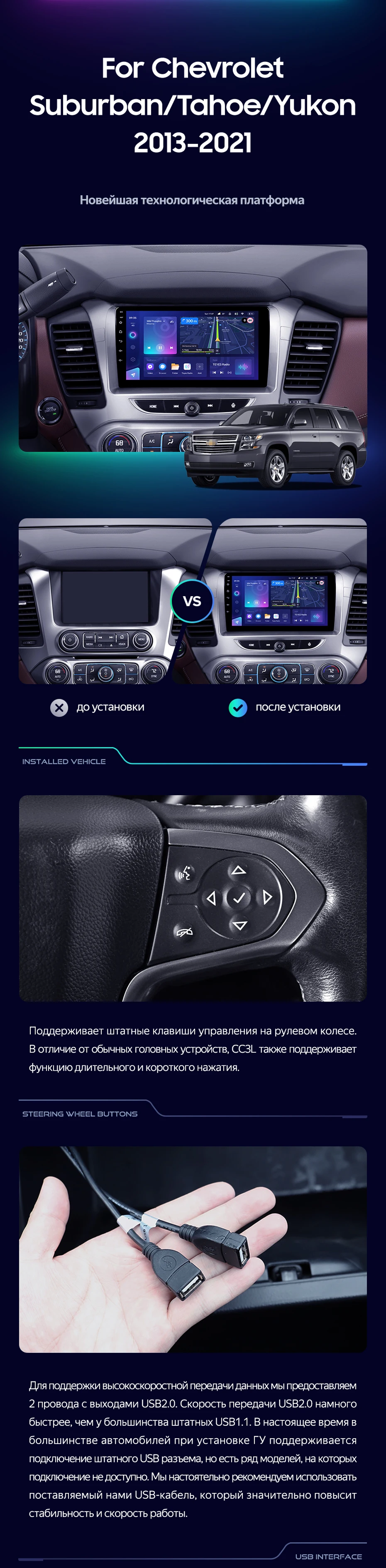 Штатная магнитола Teyes CC3L 4/64 Chevrolet Tahoe K2UC (2013-2021) - купить всего за 38 800 руб. в интернет-магазине в Сочи Teyes.com.ru. ✓ Самый лучший выбор мультимедиа ✓ Лучшая замена штатному ГУ ✓ Тел. +7 (800) 775-31-74