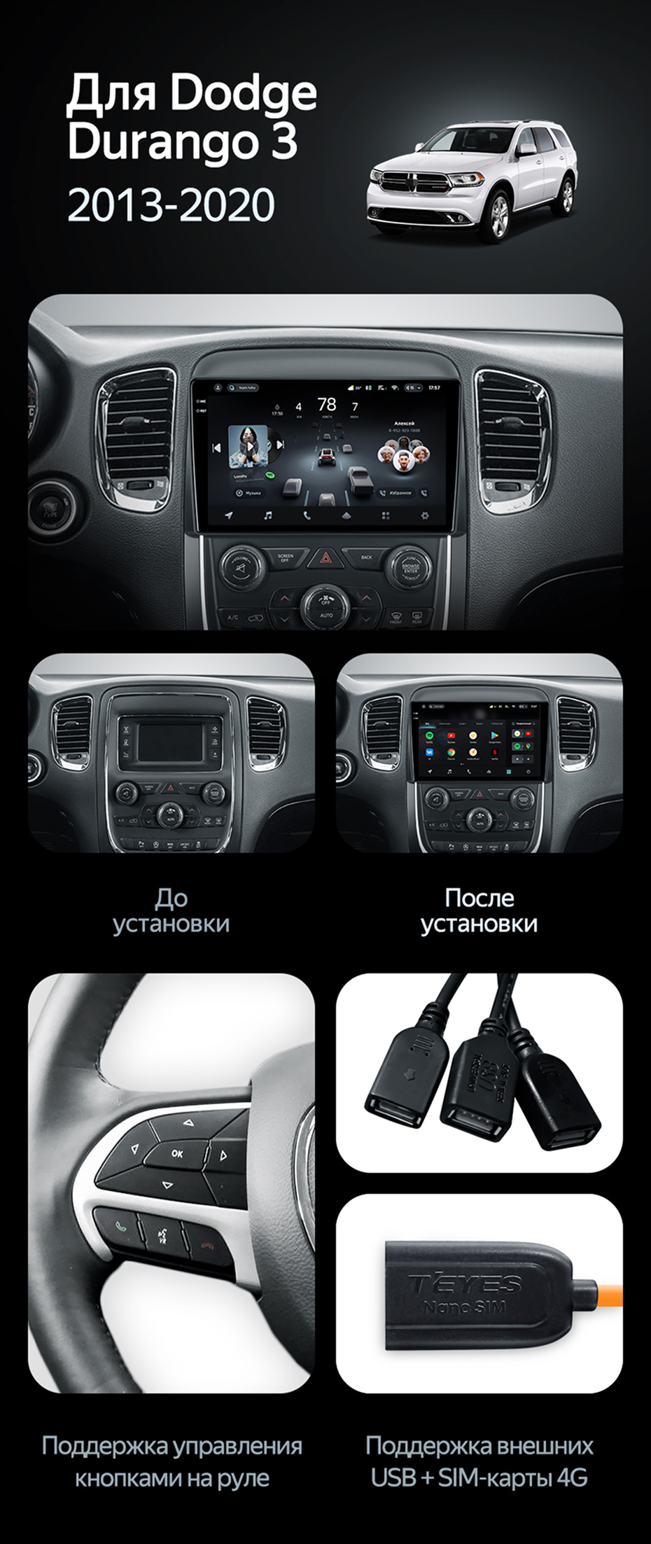 Штатная магнитола Teyes CC4 8/128 Dodge Durango 3 (2013-2020) - купить всего за 50 500 руб. в интернет-магазине в Сочи Teyes.com.ru. ✓ Самый лучший выбор мультимедиа ✓ Лучшая замена штатному ГУ ✓ Тел. +7 (800) 775-31-74
