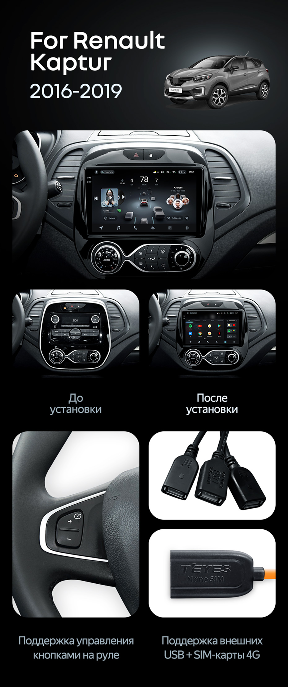 Штатная магнитола Teyes CC4 Pro 12/256 Renault Kaptur (2016-2019) F2 - купить всего за 69 220 руб. в интернет-магазине в Сочи Teyes.com.ru. ✓ Самый лучший выбор мультимедиа ✓ Лучшая замена штатному ГУ ✓ Тел. +7 (800) 775-31-74