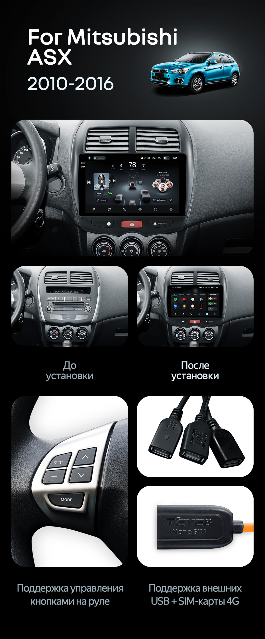 Штатная магнитола Teyes CC4 Pro 8/128 Mitsubishi ASX 1 (2010-2016) Тип-A - купить всего за 58 020 руб. в интернет-магазине в Сочи Teyes.com.ru. ✓ Самый лучший выбор мультимедиа ✓ Лучшая замена штатному ГУ ✓ Тел. +7 (800) 775-31-74