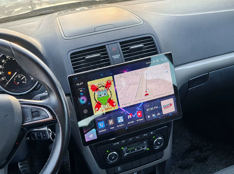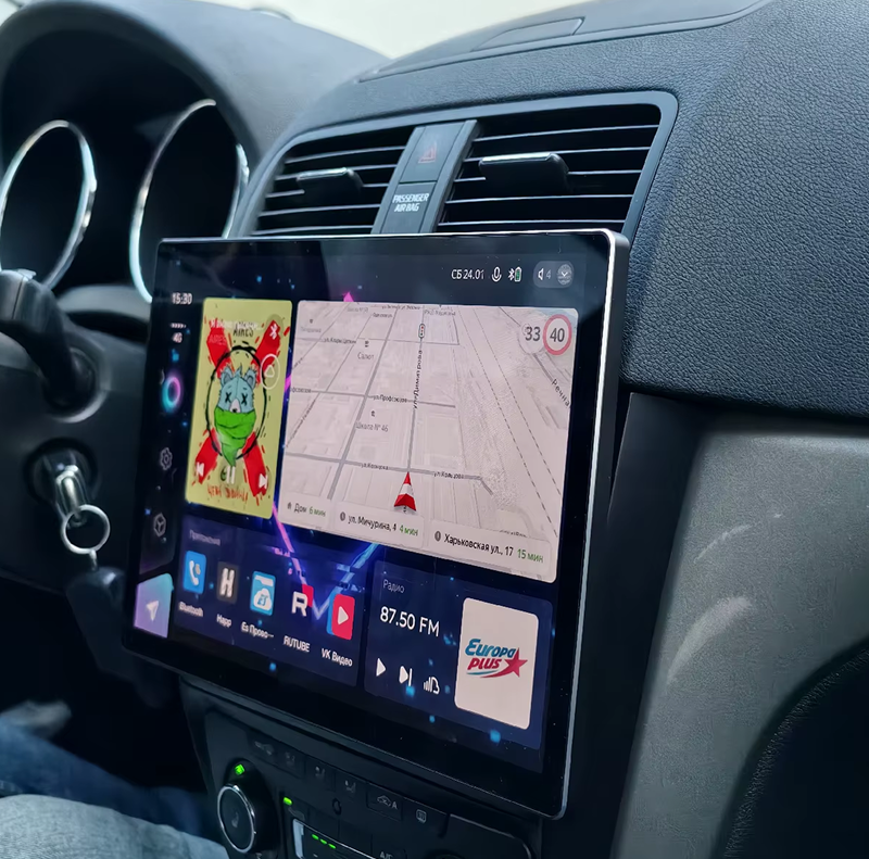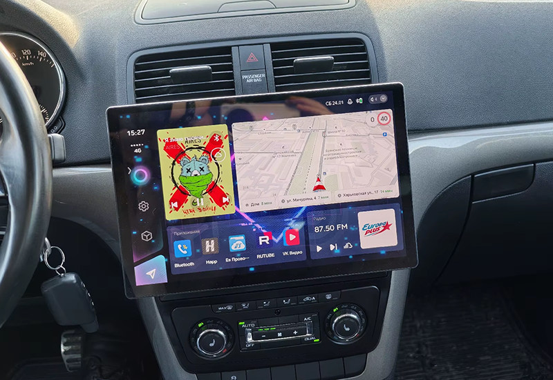 Большой сенсорный экран удобен для навигации, мультимедиа и управления функциями автомобиля. Поддерживается подключение камер, интернета 4G и дополнительных аксессуаров.