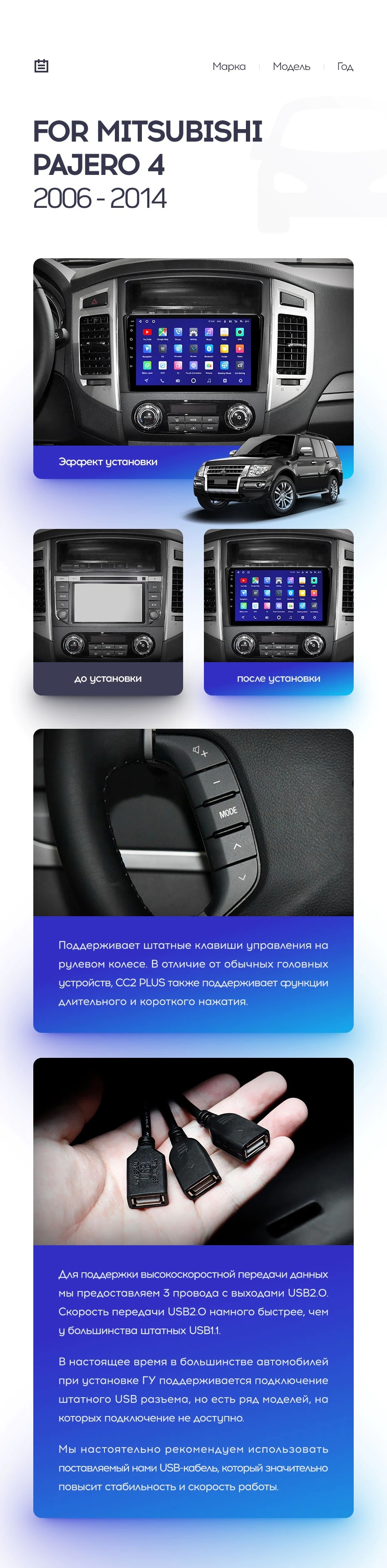 Полный комплект установки магнитолы Teyes с рамкой и проводкой можно выбрать в каталоге штатных магнитол Mitsubishi Pajero 4 V80 V90 (2006-2022).