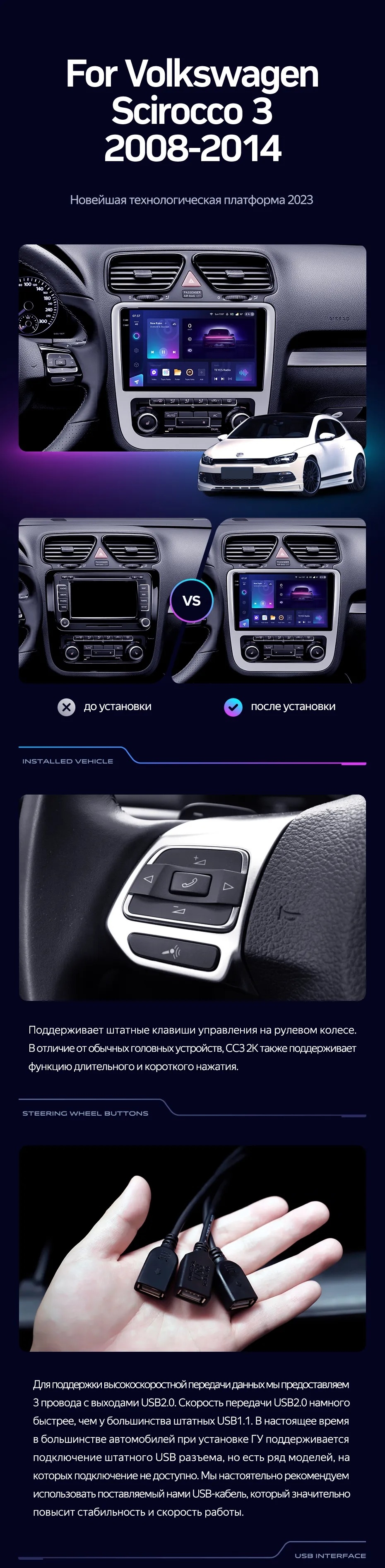 Полный комплект установки магнитолы Teyes с рамкой и проводкой можно выбрать в каталоге штатных магнитол Volkswagen Scirocco 3 Mk3 (2008-2014).