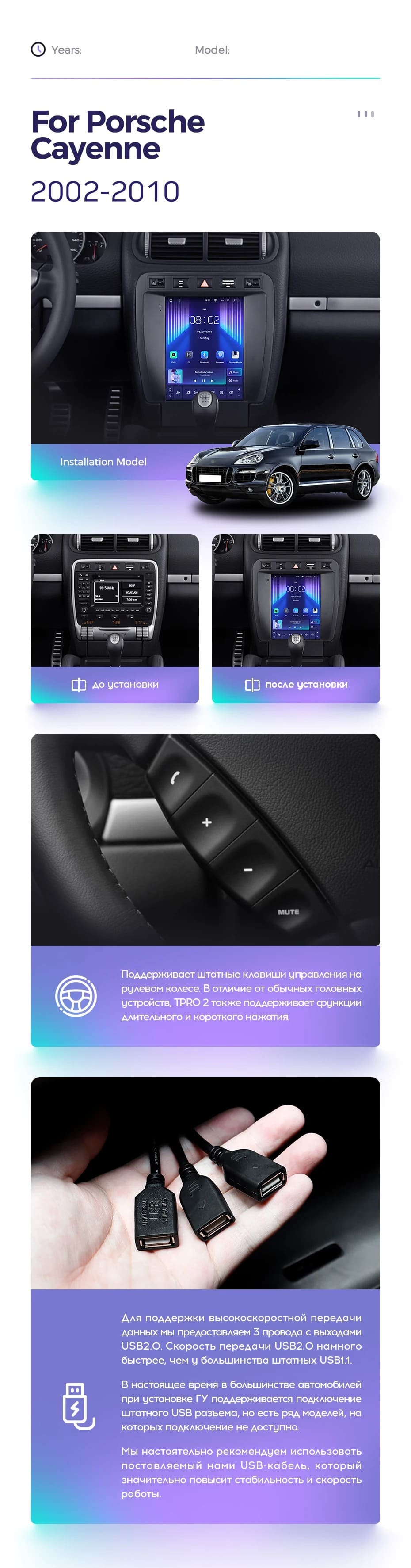 Полный комплект установки магнитолы Teyes с рамкой и проводкой можно выбрать в каталоге штатных магнитол Porsche Cayenne 1 9PA (2002-2010).
